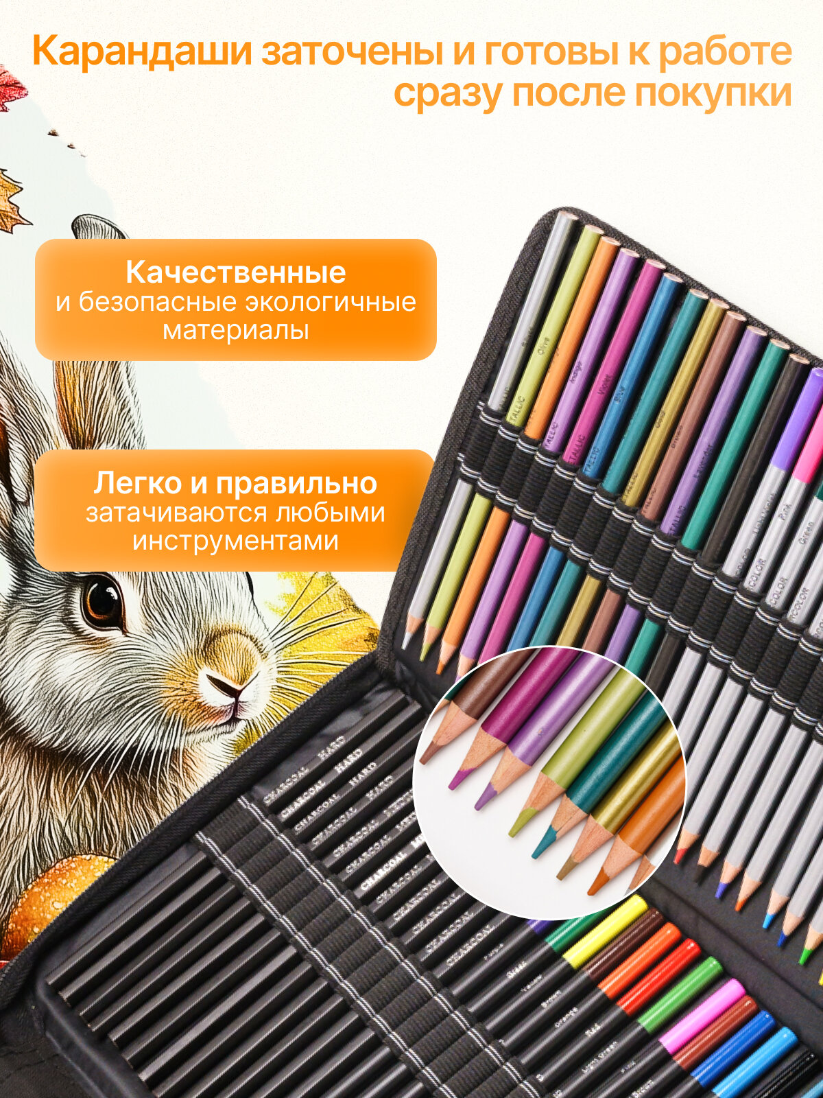 СохранитьПрофессиональный набор цветных и графитных карандашей, аксессуаров для рисования и графики 72 предмета интересное: