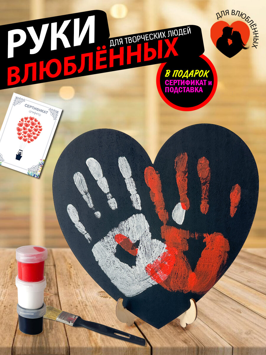 Набор для творчества и рисования / Акриловый отпечаток слепок рук влюбленных / Подарок любимому, любимой, семье, для пар