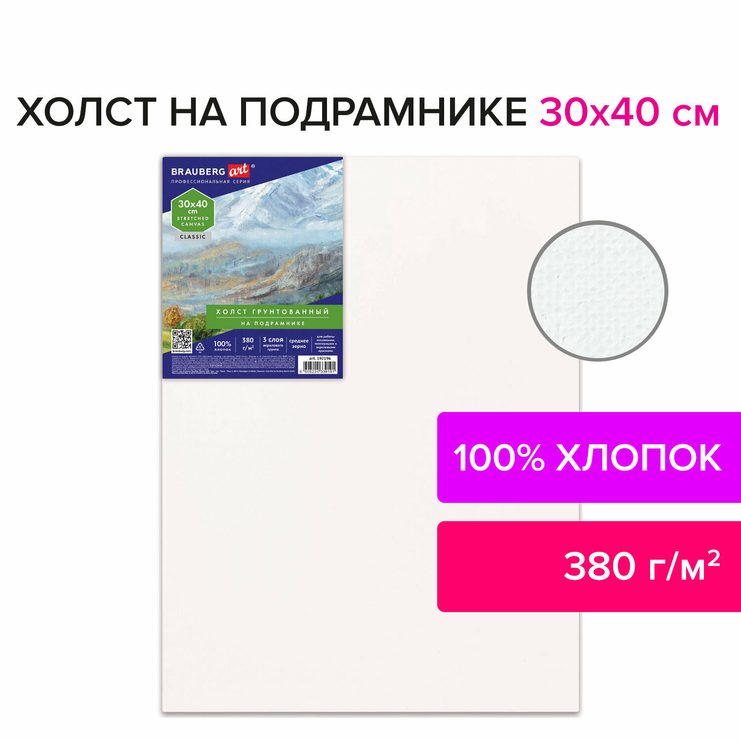 Холст / на подрамнике для рисования 30х40 см, 380 г/м2, грунтованный, 100% хлопок, Brauberg Art