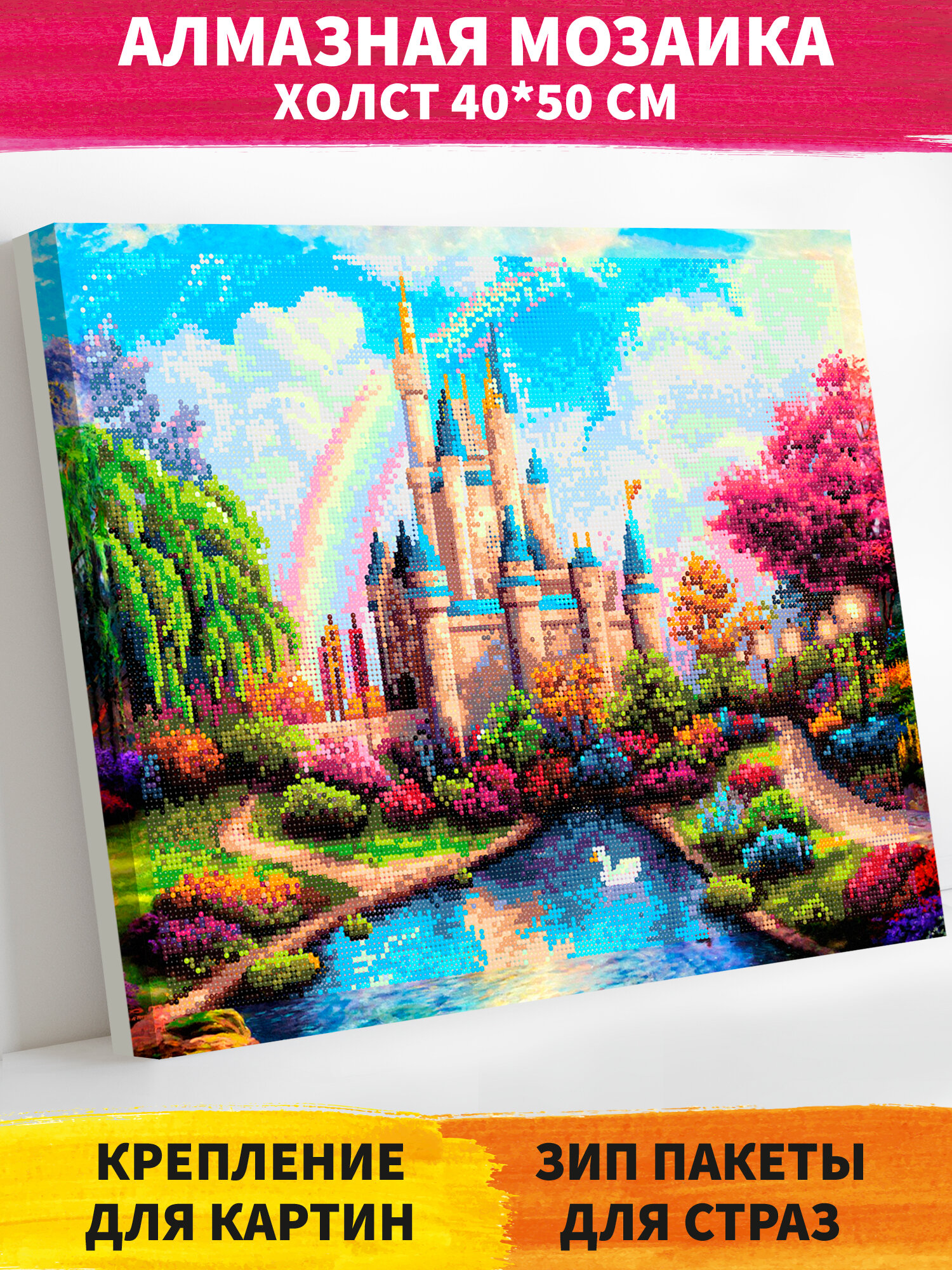 Алмазная мозаика. Холст на подрамнике 40х50 см "Сказочный замок". Алмазная вышивка. Картина стразами интересное: