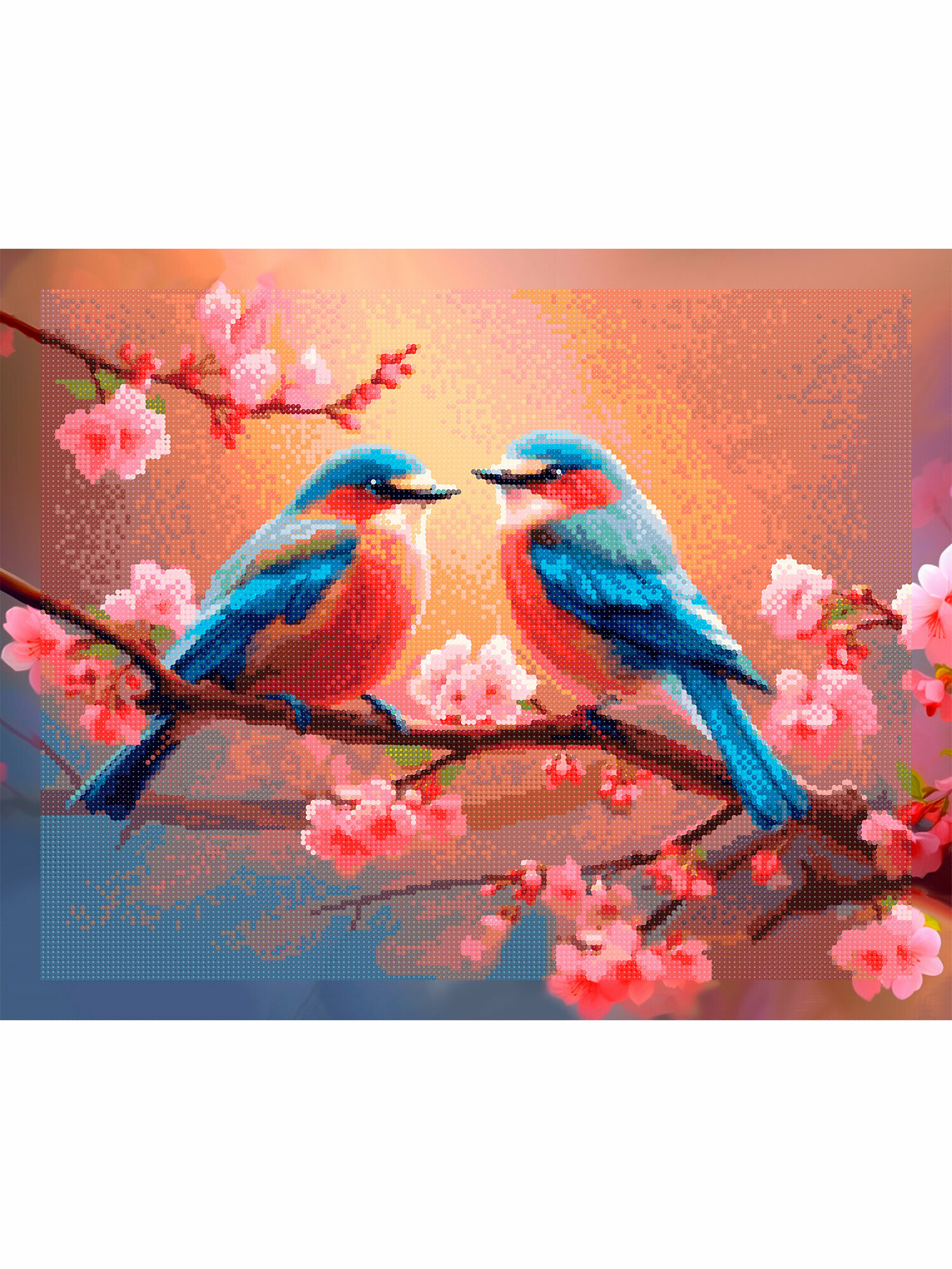 СохранитьАлмазная мозаика на подрамнике 40х50 см "Влюбленные пташки" Алмазная вышивка. Картина стразами интересное: