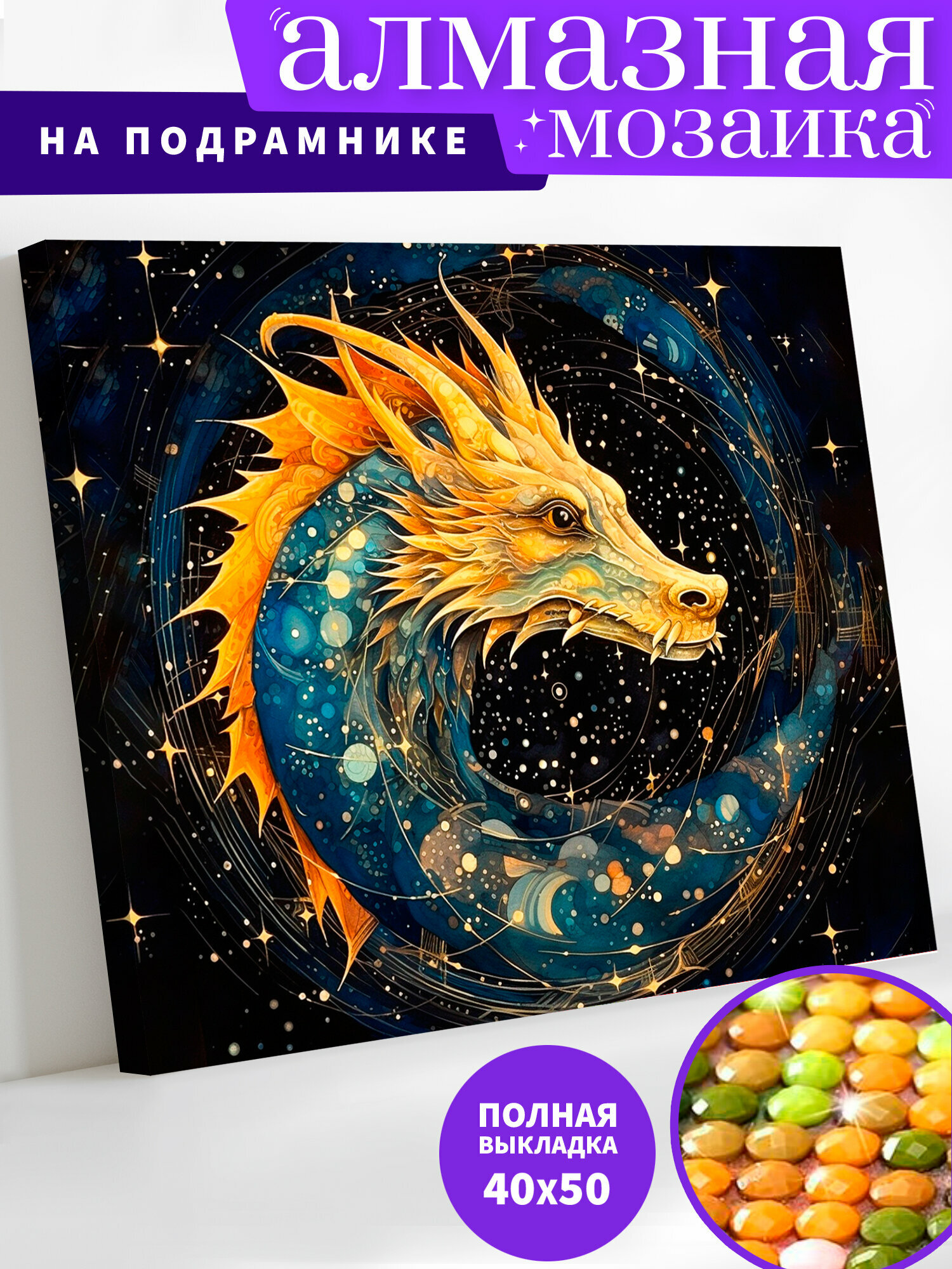 Купить Алмазная мозаика на деревянном подрамнике 40х50 см "Год дракона" Алмазная вышивка. Картина стразами
