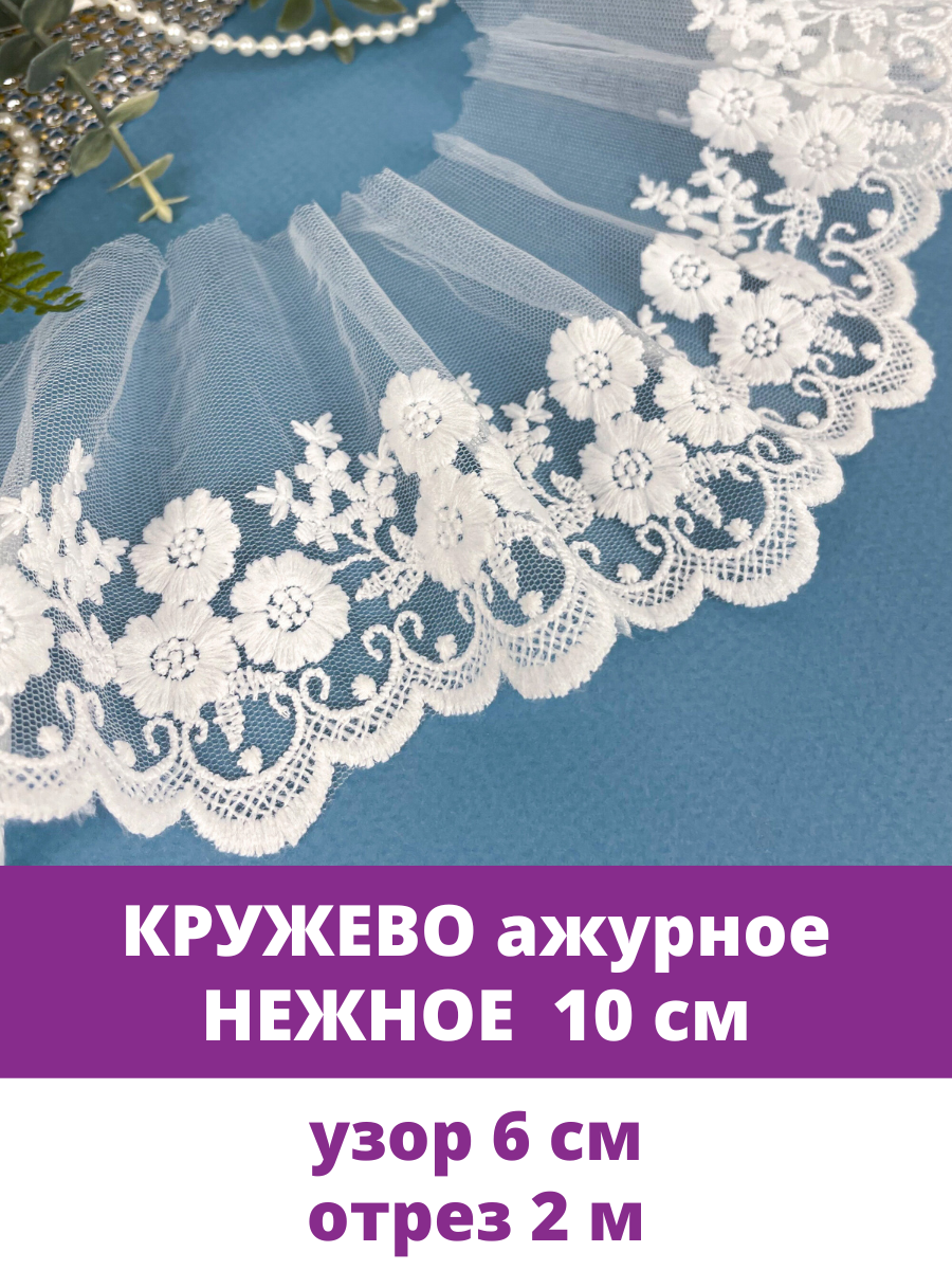Купить Кружево широкое, белое ажурное, для рукоделия, ширина 10 см, 2 м