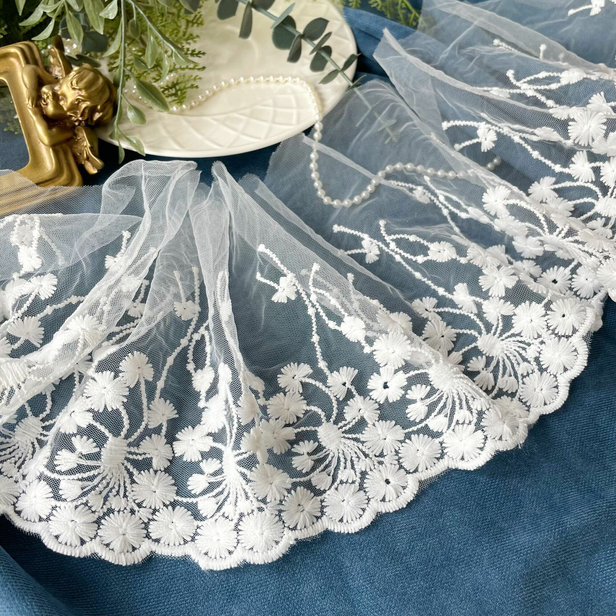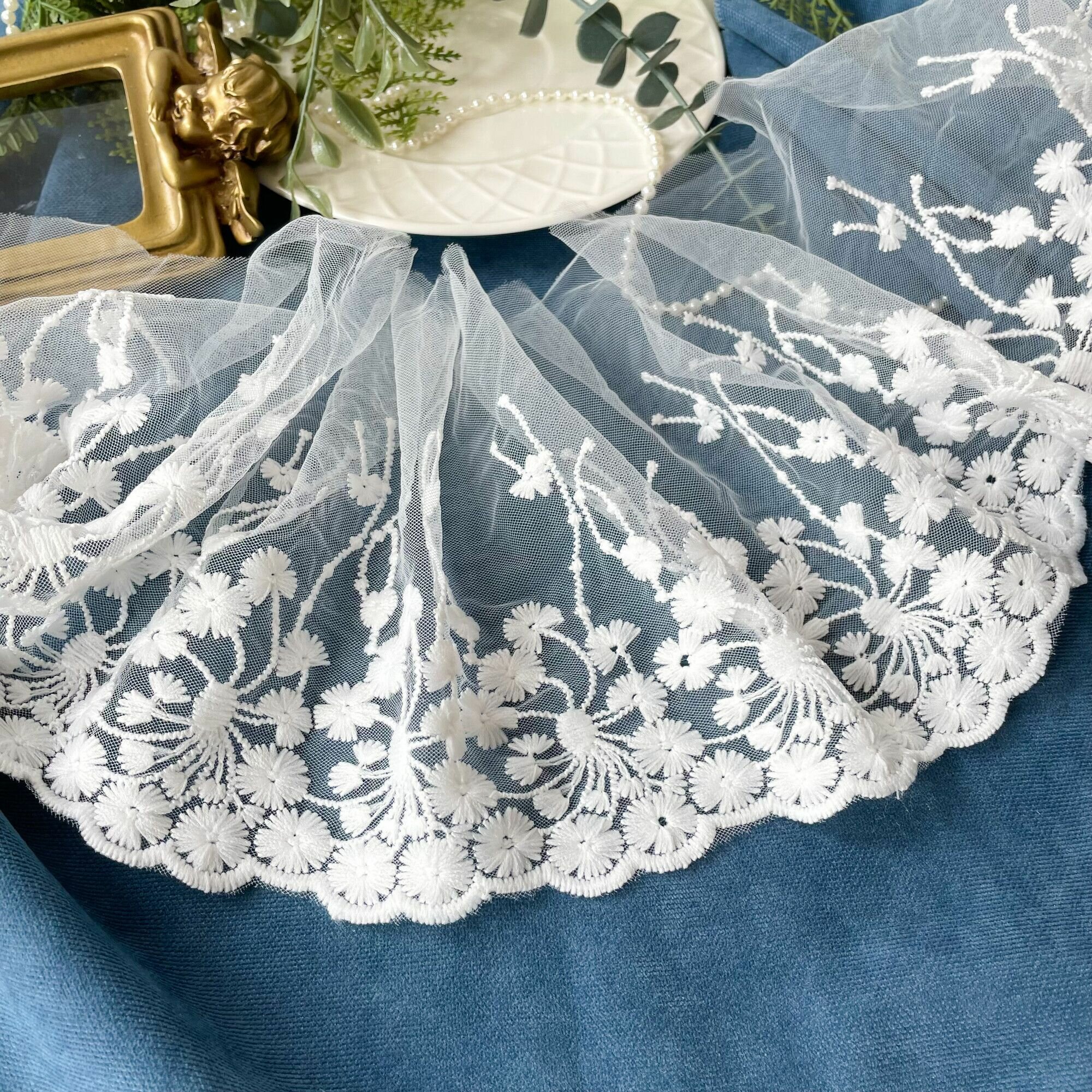 Кружево широкое, белое ажурное, для рукоделия, ширина 10 см, 2 м