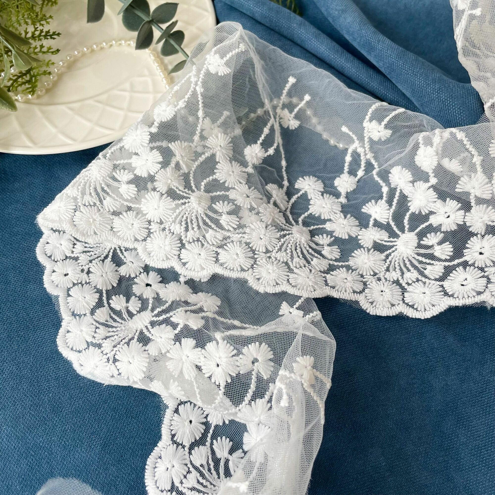 Кружево, белое ажурное, для рукоделия, ширина тесьмы 5 см, 2 м