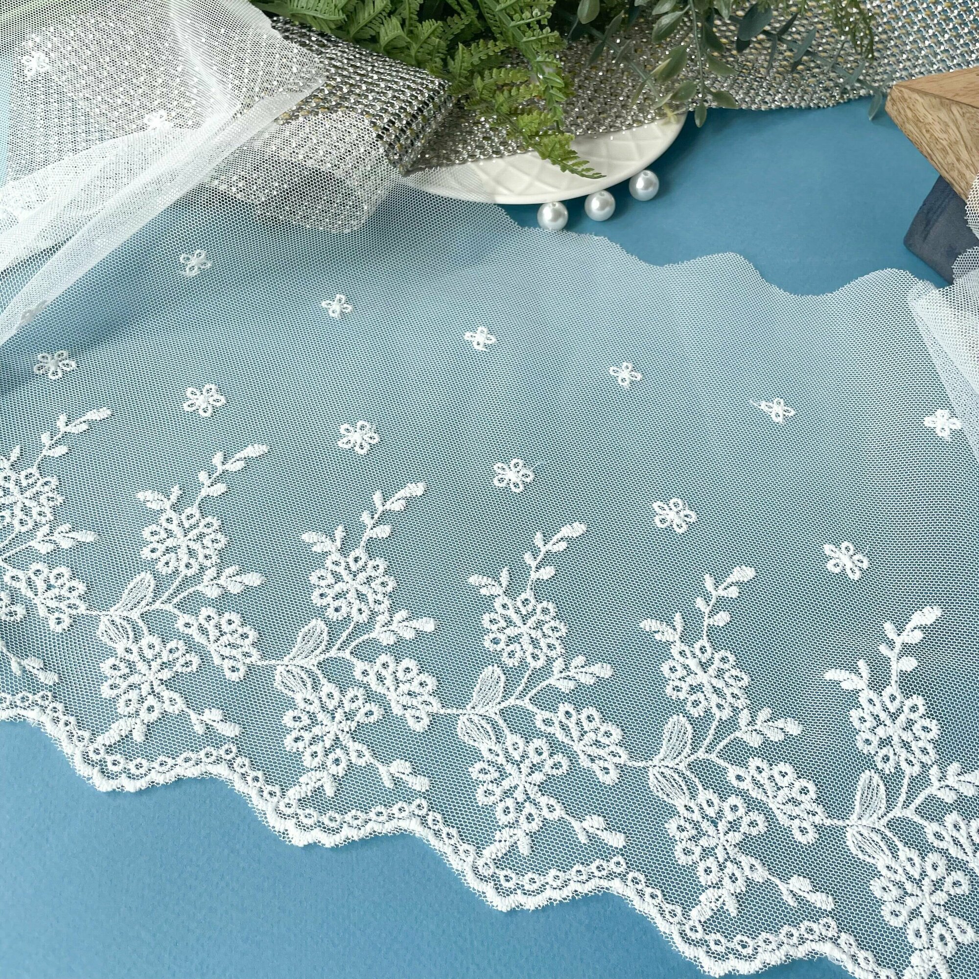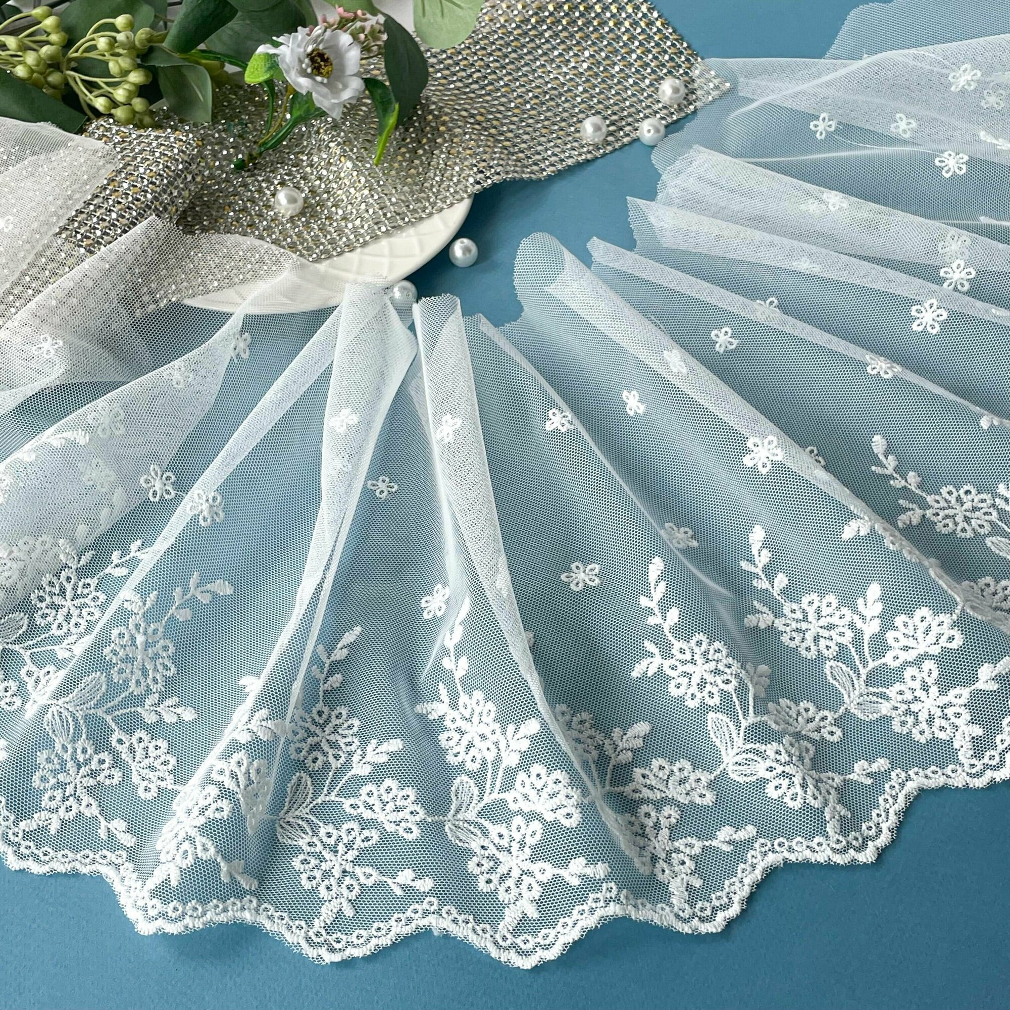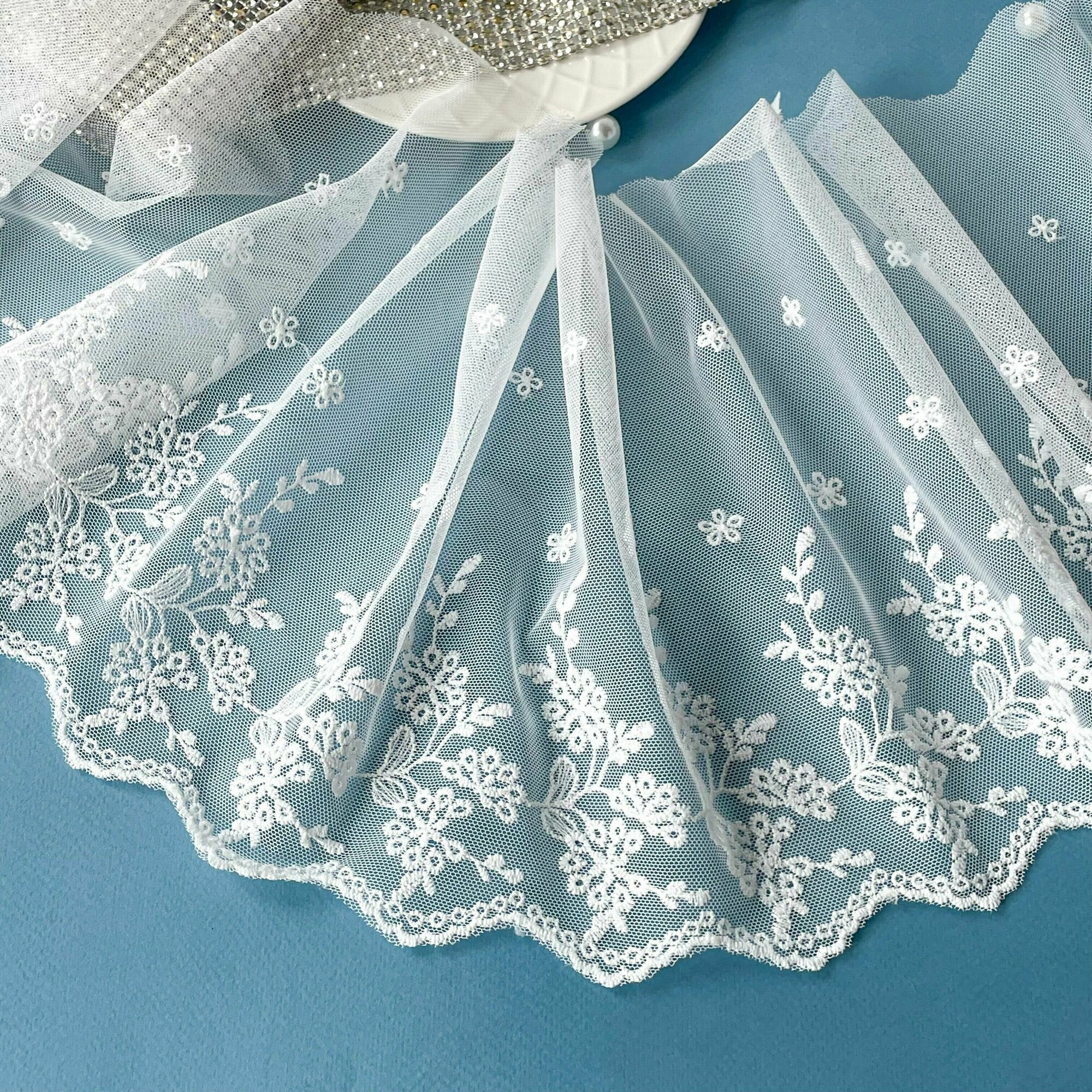 Кружево широкое, белое ажурное, для рукоделия, ширина 10 см, 2 м