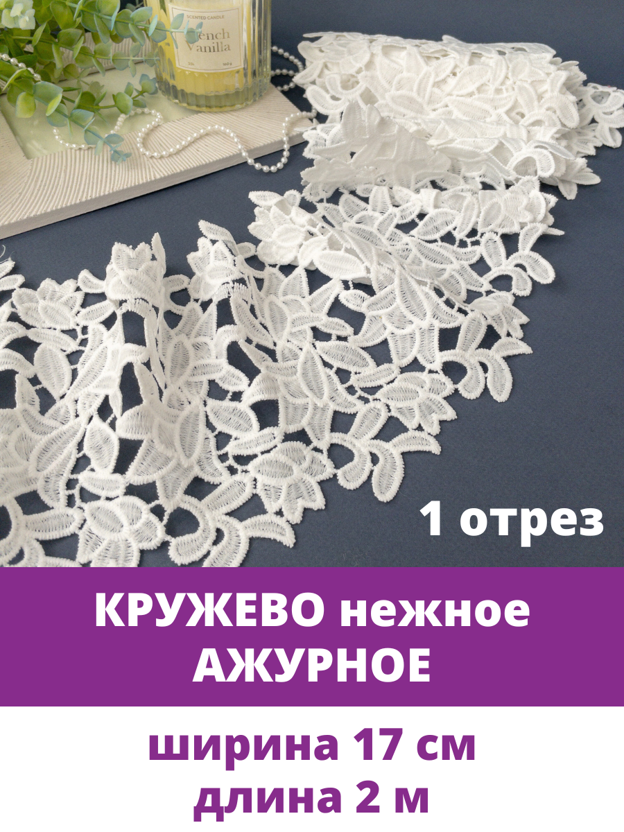 Кружево, для рукоделия и шитья, белое ажурное, ширина тесьмы 17 см, отрез 2 м