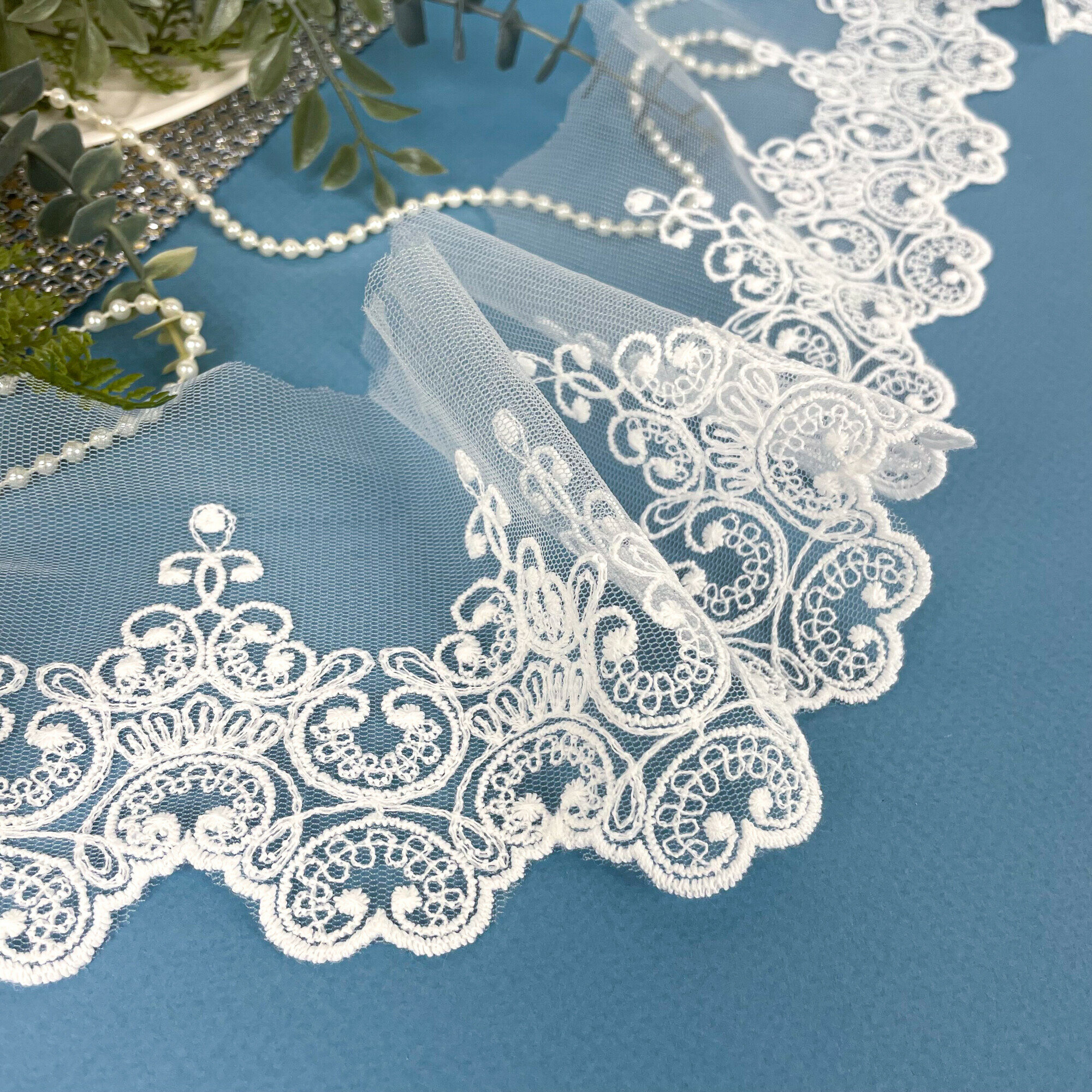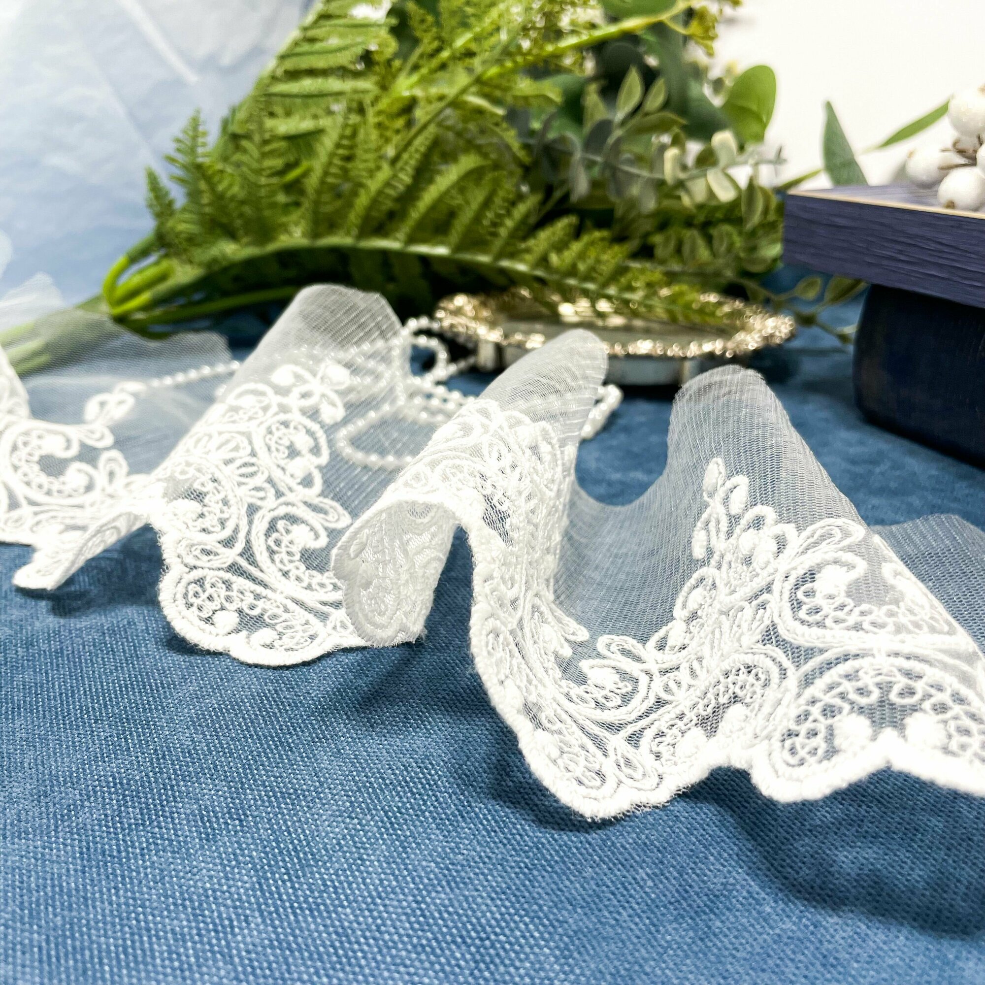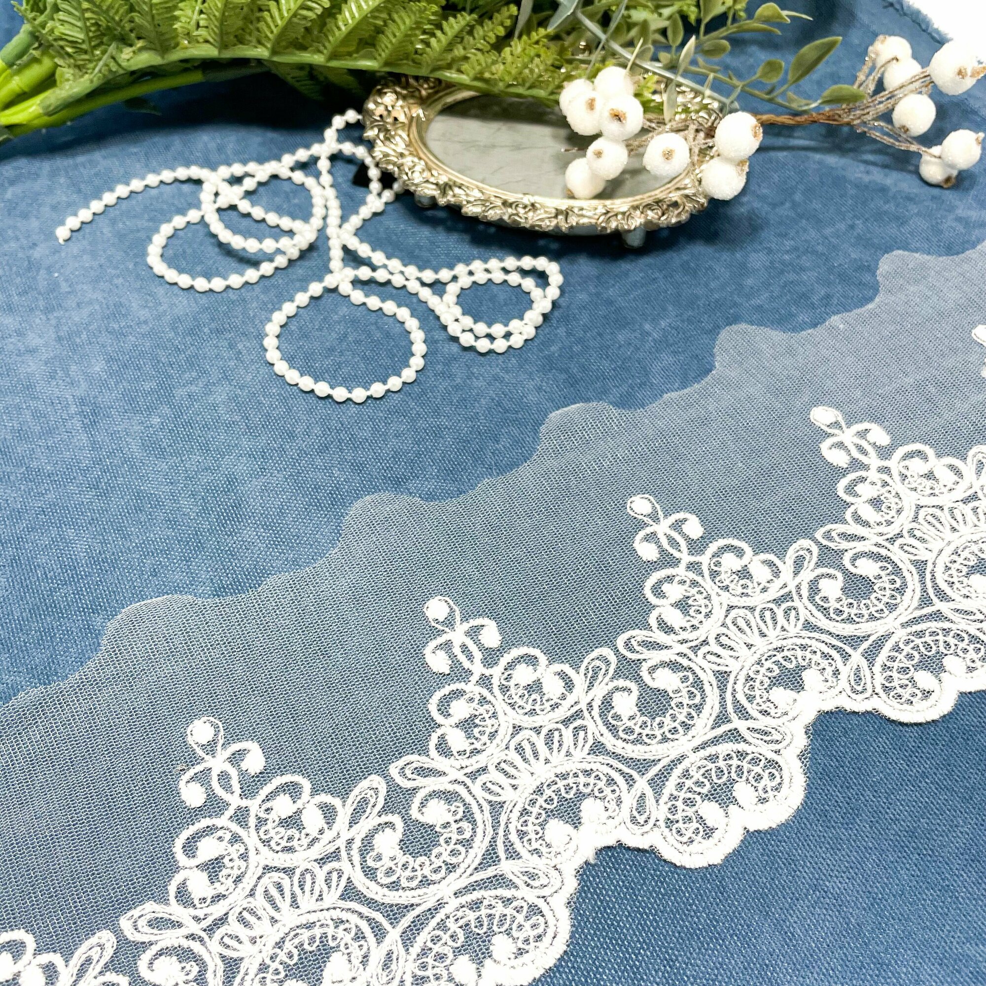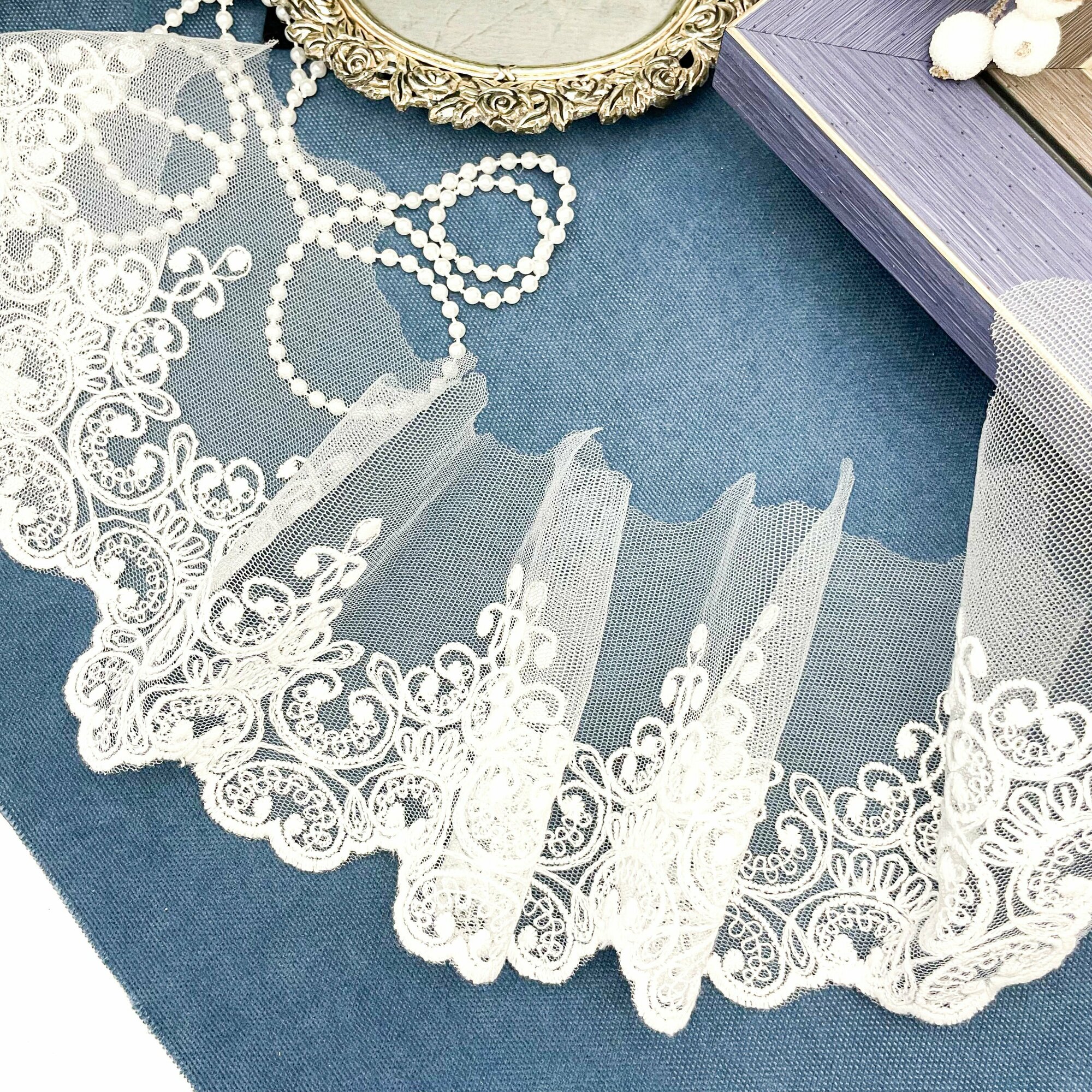 Купить Кружево широкое, белое, ширина узора 8 см + фатин 2,5 см, 2 м