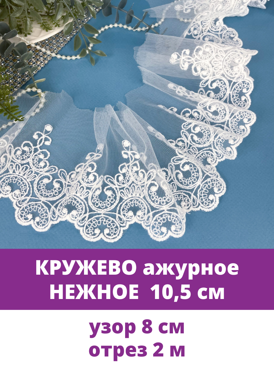 Кружево широкое, белое, ширина узора 8 см + фатин 2,5 см, 2 м интересное: