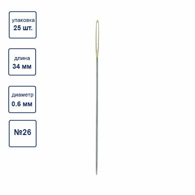 Иглы для шитья ручные гобеленовые №26 GAMMA в конверте, острие закругленное, 25шт, 1шт