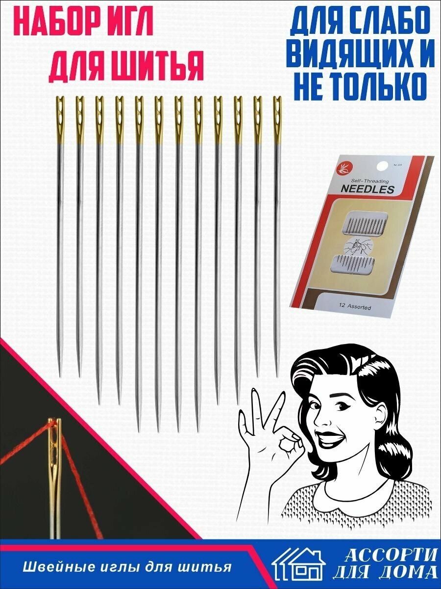 Иглы для шитья/ иголки для слабовидящих, 12 шт./ набор игл для шитья, вышивания/ швейные иглы/ иголка швейная интересное: