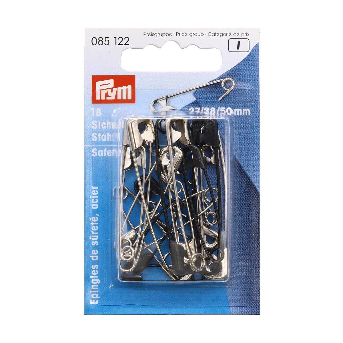 "PRYM" 085122 Булавки английские ассорти 100% сталь в блистере 18 шт 27/38/50 мм, черные/под серебро