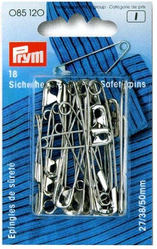 "PRYM" 085122 Булавки английские ассорти 100% сталь в блистере 18 шт 27/38/50 мм, черные/под серебро
