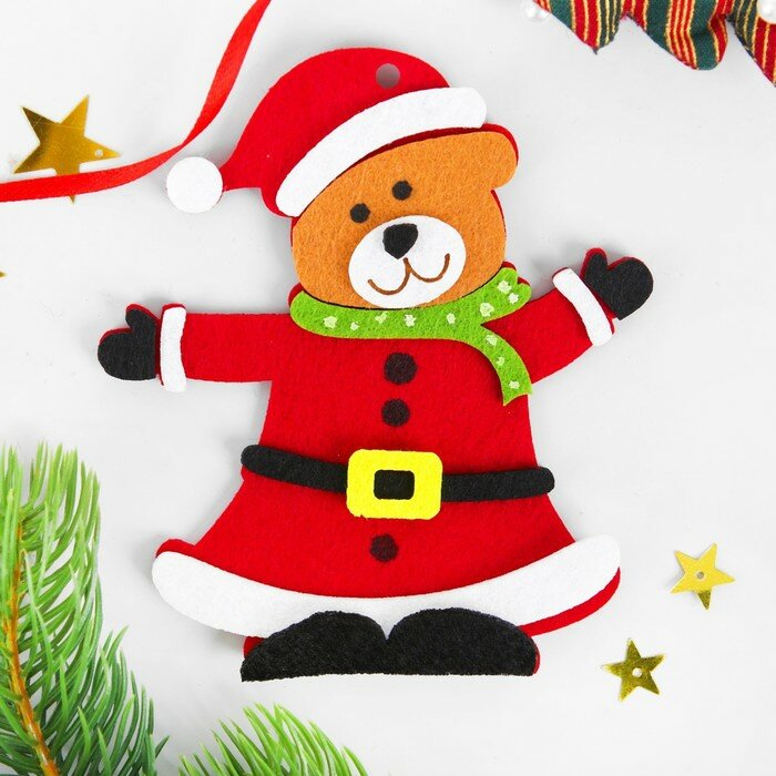 Купить Набор для творчества - создай ёлочное украшение из фетра «Новогодний мишка» (1шт.)