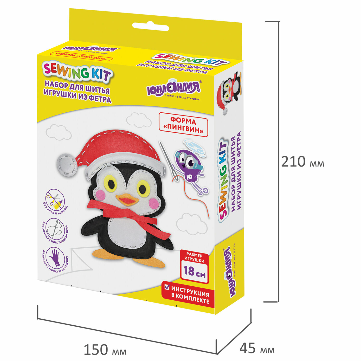 СохранитьНабор для шитья игрушки куклы из фетра детский для девочек, подарок для творчества и рукоделия, швейный набор для детей, Юнландия Пингвин, 664731 интересное: