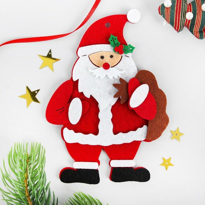 Купить Набор для творчества - создай ёлочное украшение из фетра Дед мороз с мешком подарков