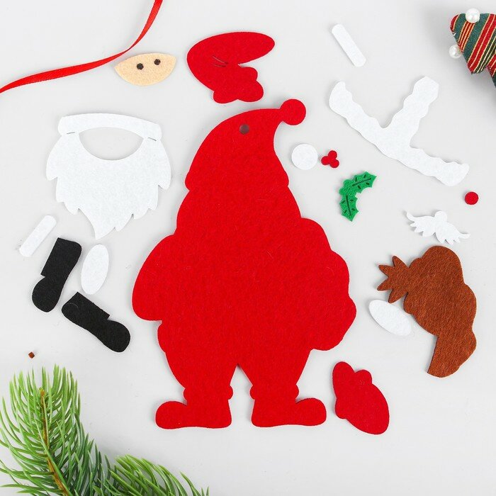 Набор для творчества - создай ёлочное украшение из фетра Дед мороз с мешком подарков интересное: