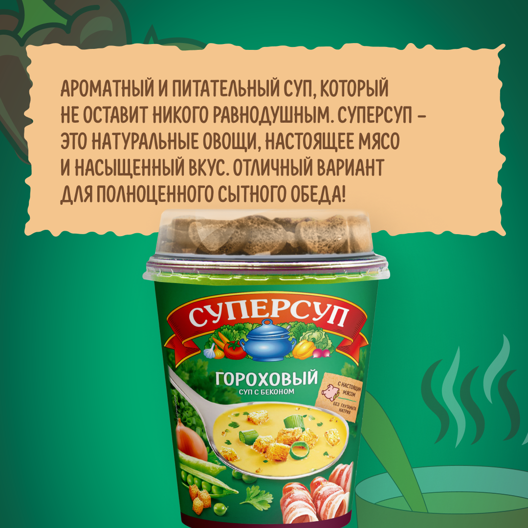 Суперсуп "Гороховый с беконом+гренки" 45г/12 шт в кор (ТУ-2... интересное: