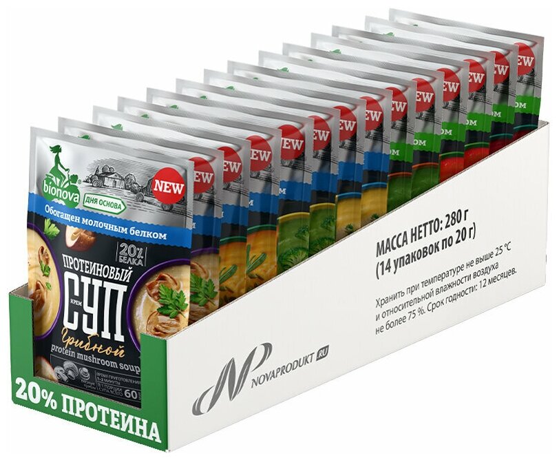 Крем-суп протеин BIONOVA грибной быстрого приготовления 20г по 14шт интересное: