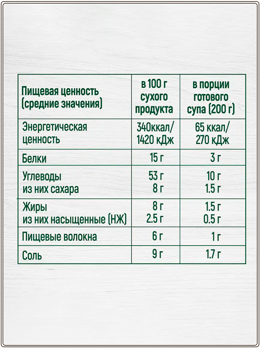| Особенности | натуральный продукт / с вермишелью / с сухариками |