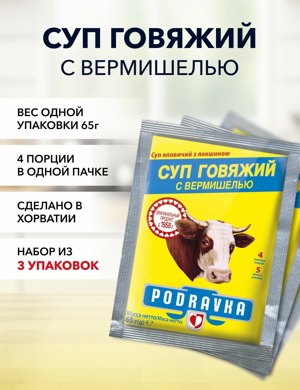 Суп говяжий с вермишелью Podravka 65 г*3 шт интересное: