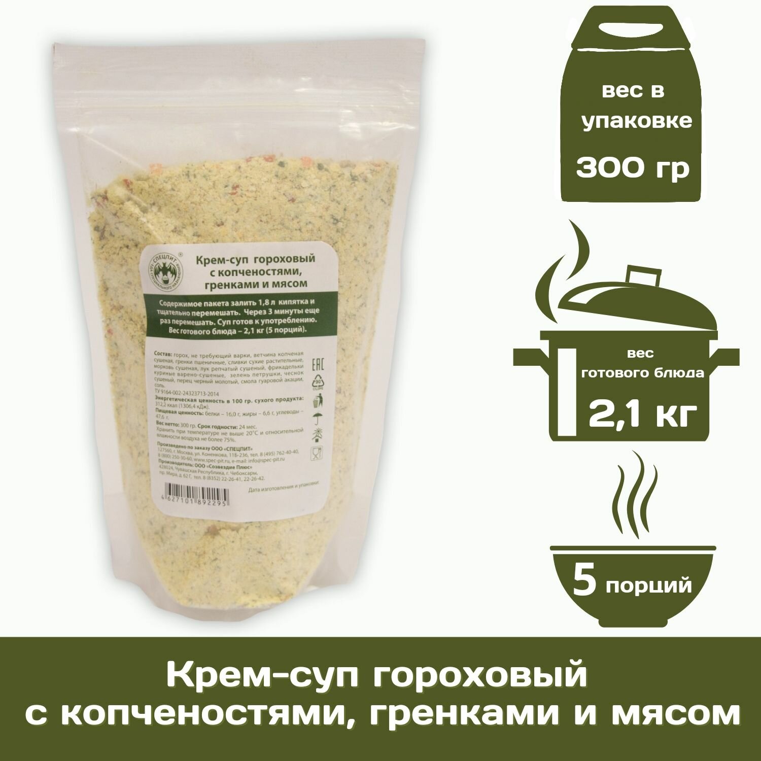 Крем-суп гороховый с копченостями гренками и мясом спецпит 300 г интересное: