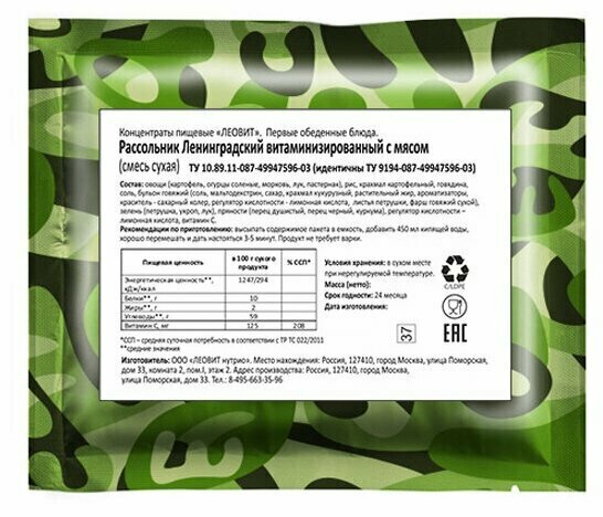 Концентрат пищевой. Рассольник Ленинградский витаминизированный, пакет 40 г, Леовит интересное: