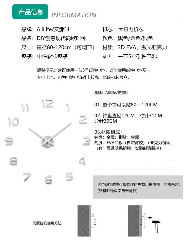 Купить Настенные часы diyclock, акриловые, 100-120 см, серебристые