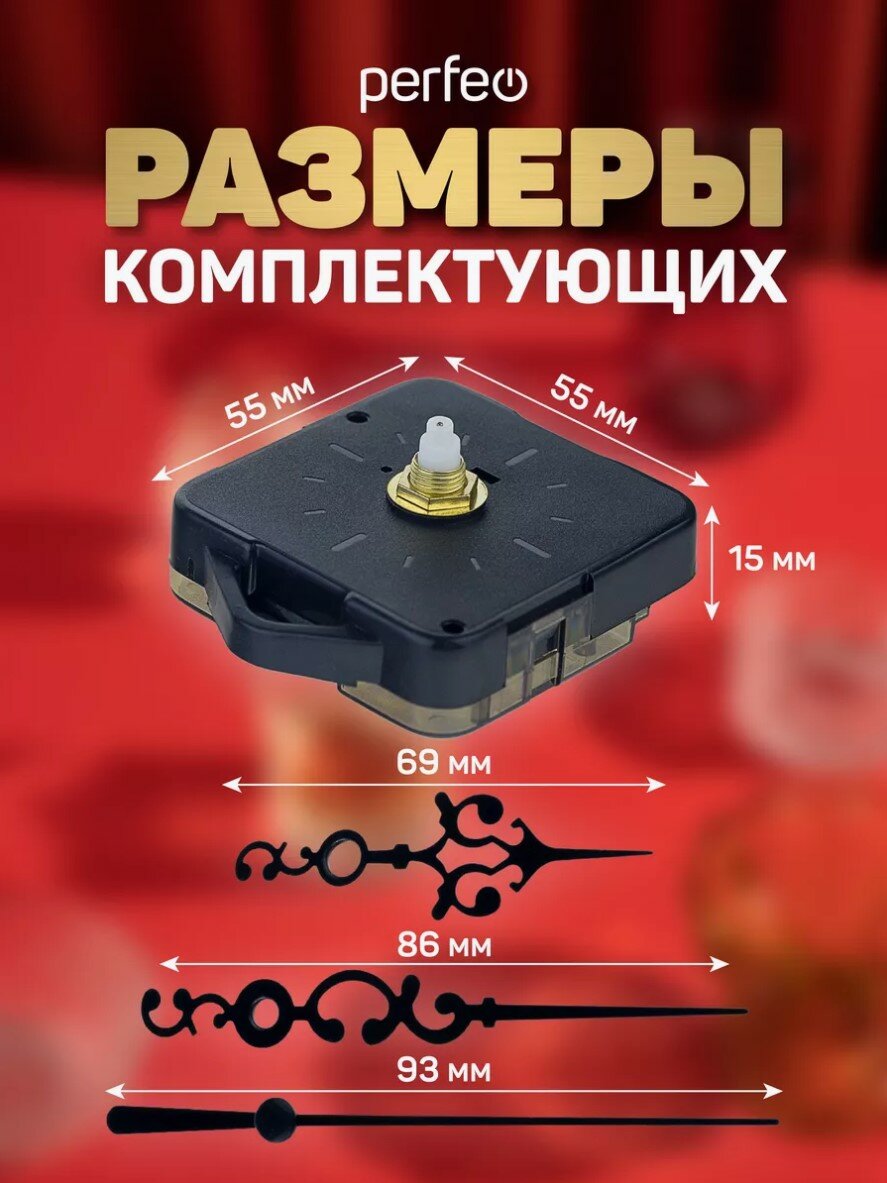Купить Часовой механизм со стрелками Perfeo "PF-WM-011", шток 16 мм, стрелки 93/86/69 мм
