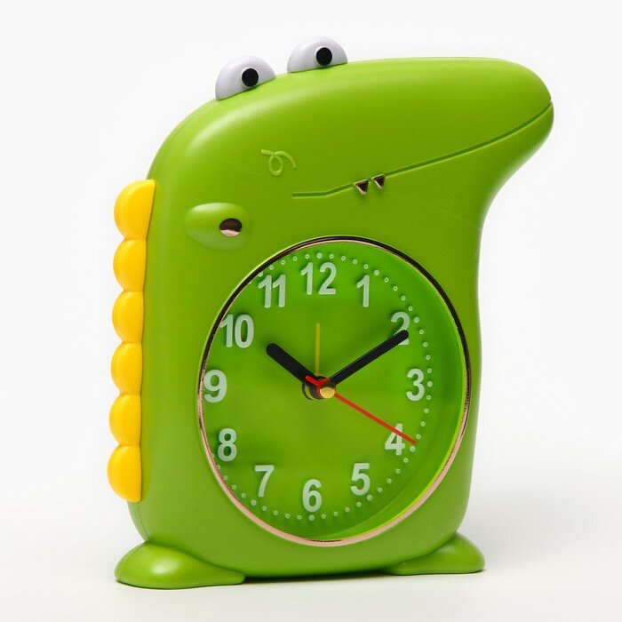 Купить Часы - будильник настольные "Крокодил" детские, дискретный ход, d-9 см, 12 х 15 см, АА