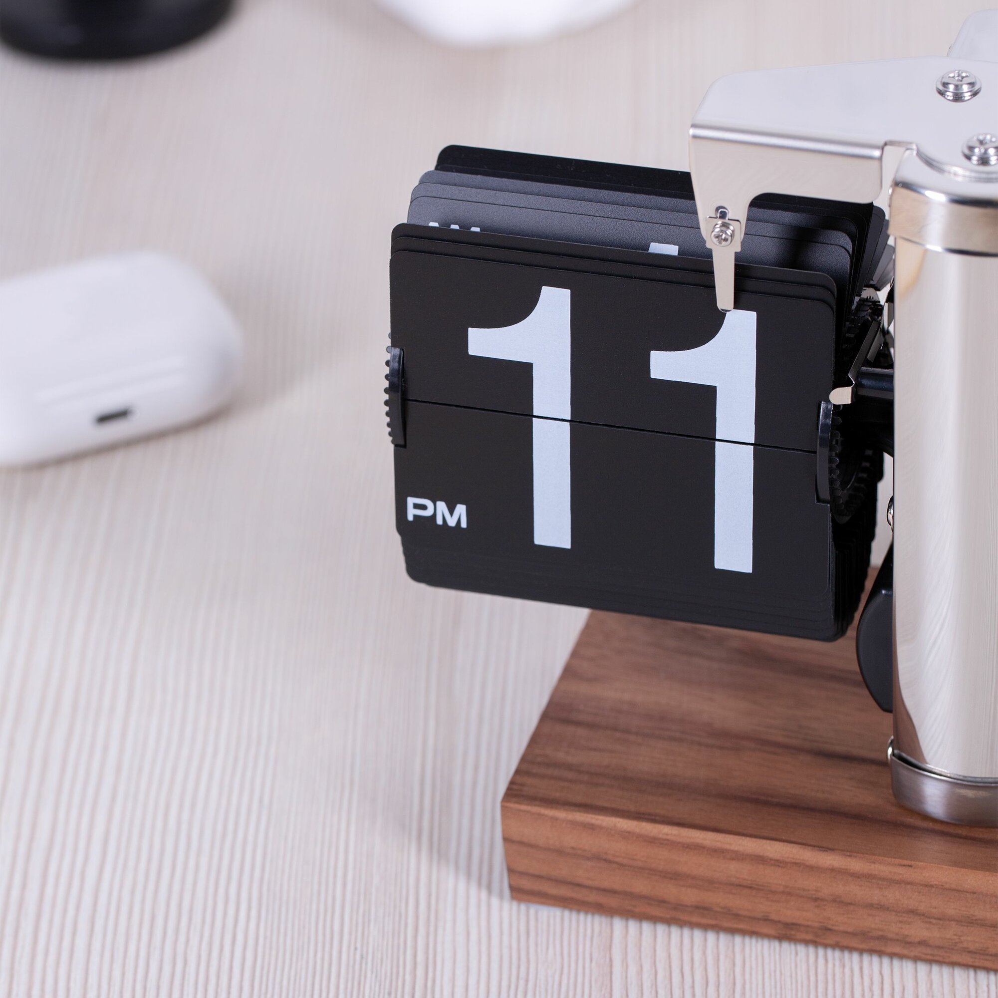 Купить Классические перекидные часы Flip-Clock на деревянной подставке, 14х20х9, Chrome
