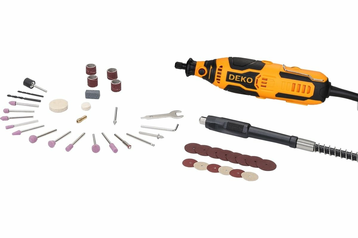 DEKO Гравер электрический DKRT200 с регулировкой скорости, 200 Вт + набор аксессуаров 43 шт 085-1001 интересное: