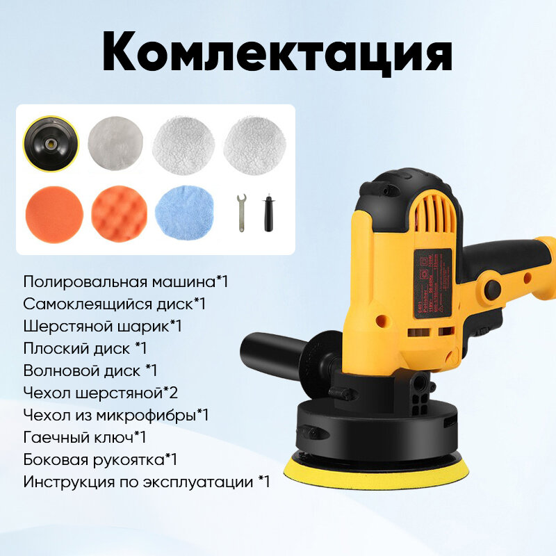 | Комплектация | Полировальная машина, Дополнительная рукоять, Набор насадок 7шт. |