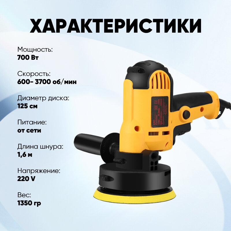 Полировальная машинка, Шлифовальная машинка, Орбитальная шлифмашина, эксцентриковые шлифмашины, 700Bт, 125мм