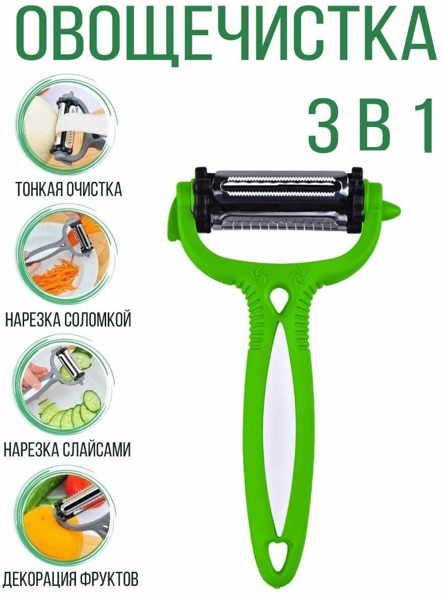 Фрукто - овощечистка универсальная 3в1, с 3мя видами лезвий для овощей и фруктов, салатовый интересное: