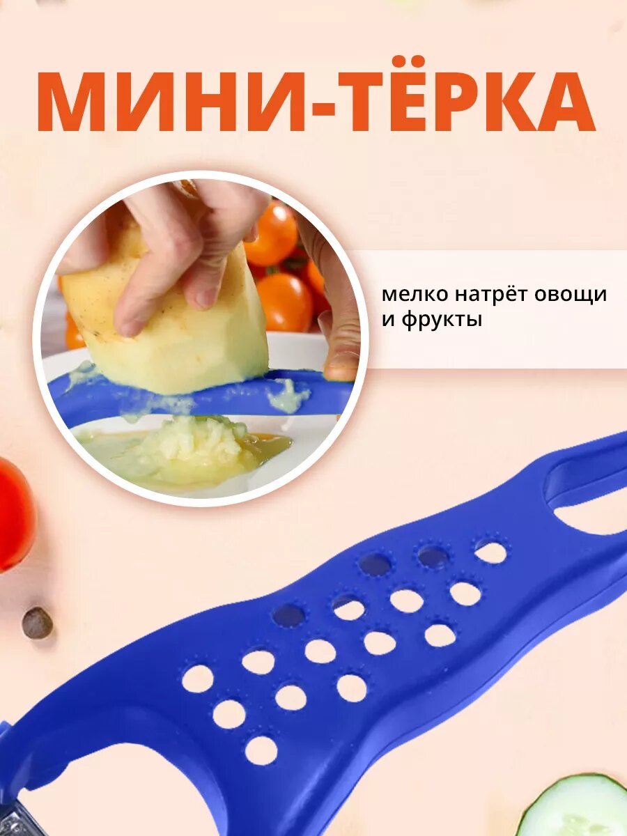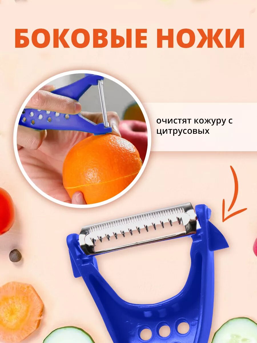 Купить Овощечистка ручная, универсальный нож для чистки, нарезки овощей 5в1, цвет синий