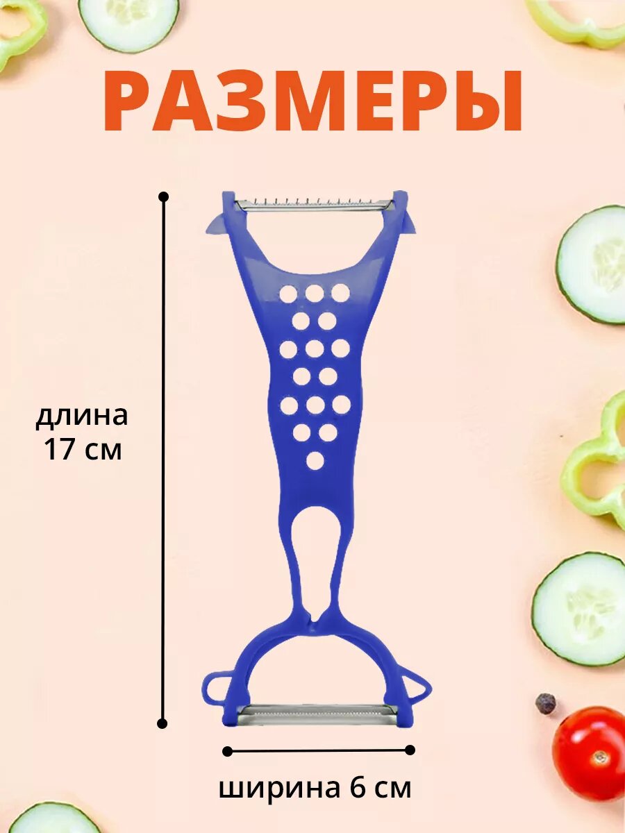 Овощечистка ручная, универсальный нож для чистки, нарезки овощей 5в1, цвет синий интересное: