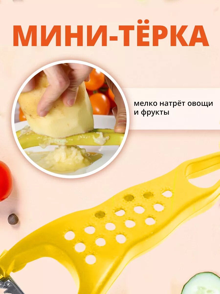 Овощечистка ручная, универсальный нож для чистки, нарезки овощей 5в1, цвет желтый интересное: