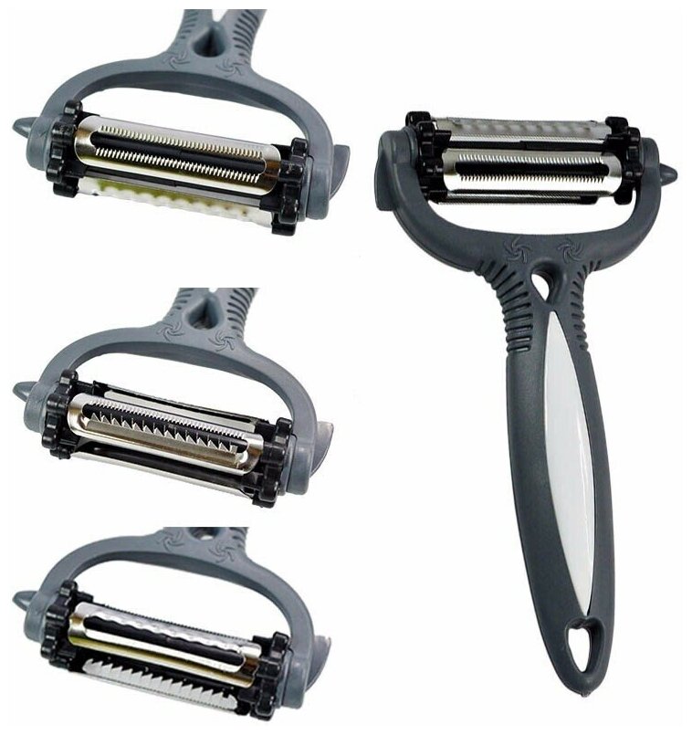 Купить Фрукто - овощечистка универсальная 3в1, с 3мя видами лезвий для овощей и фруктов, черный