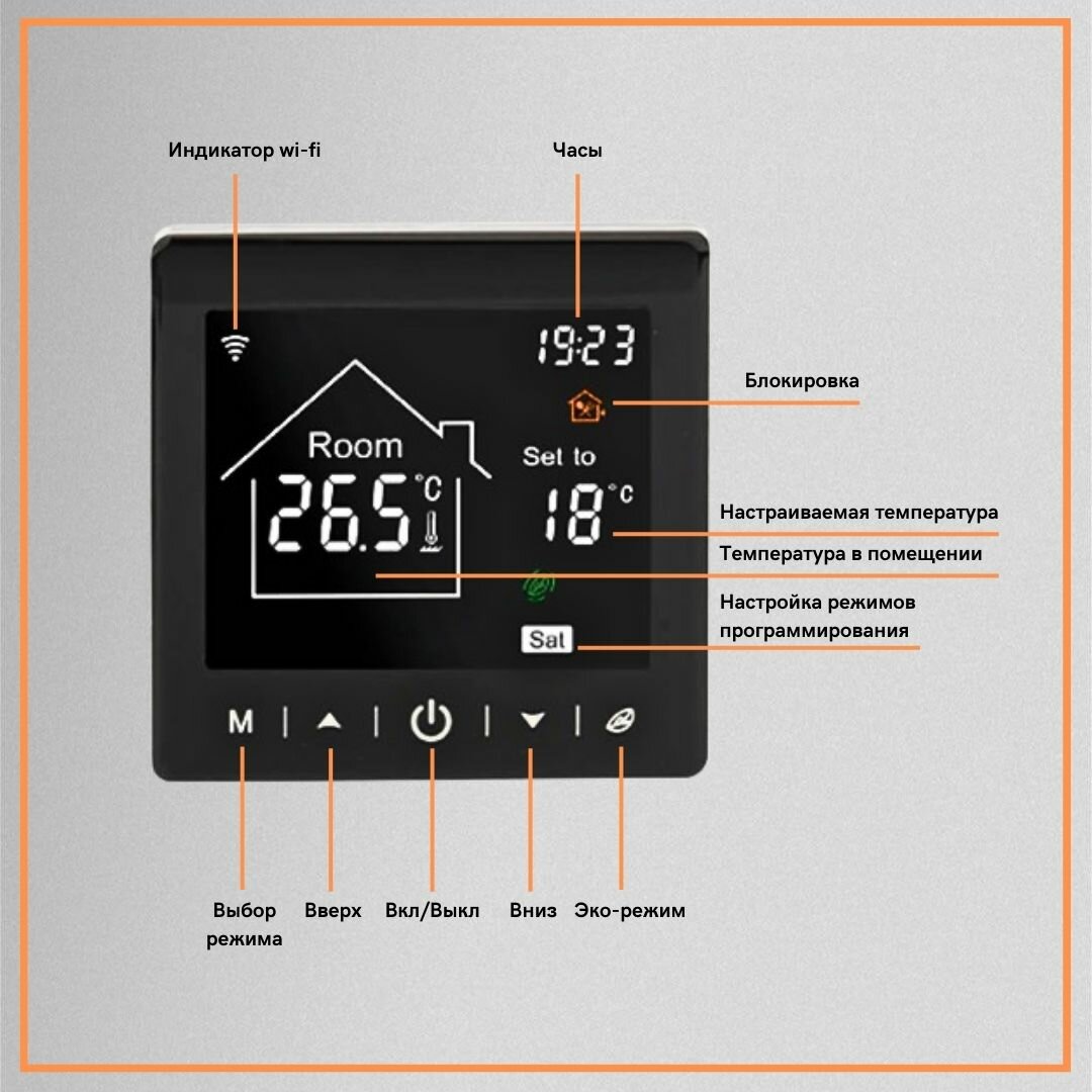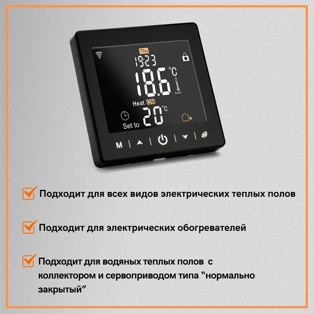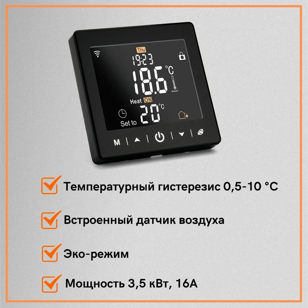 Умный терморегулятор для тёплого пола с функцией WI-FI черный, терморегулятор для обогревателя