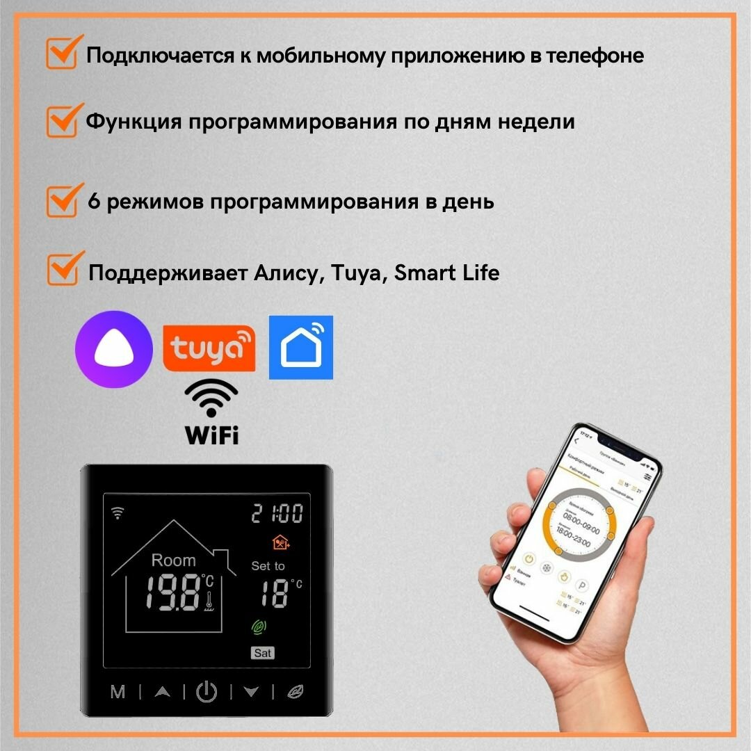 Умный терморегулятор для тёплого пола с функцией WI-FI, терморегулятор для обогревателя