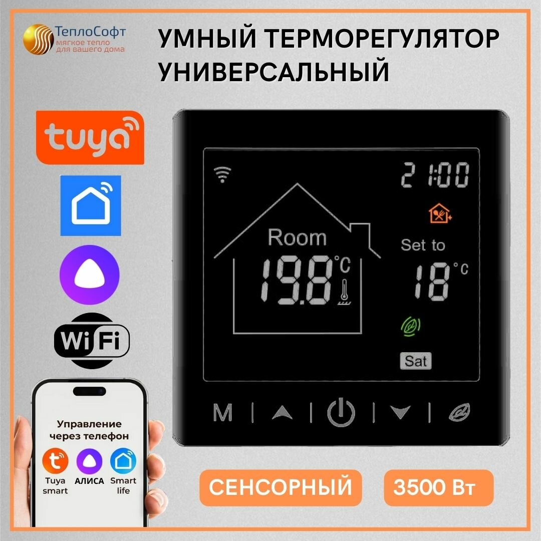 Купить Умный wifi терморегулятор термостат для теплого пола совместим с Tuya и Алисой голосовое управление для умного дома черный