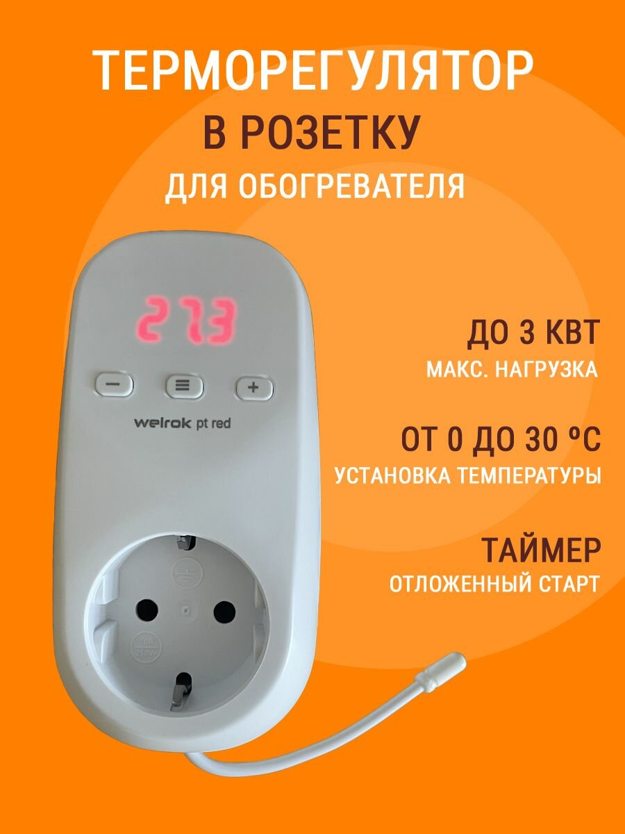 Терморегулятор для обогревателя Welrok PT red, розеточный универсальный интересное: