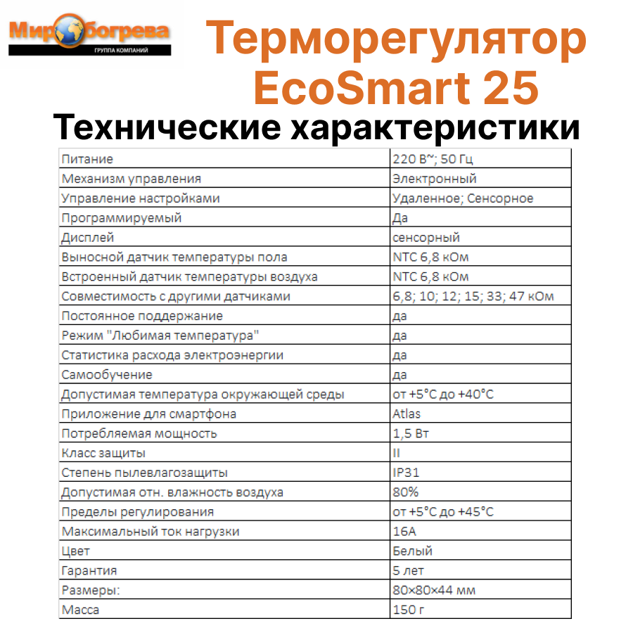 | Подходит для электрического теплого пола | есть |