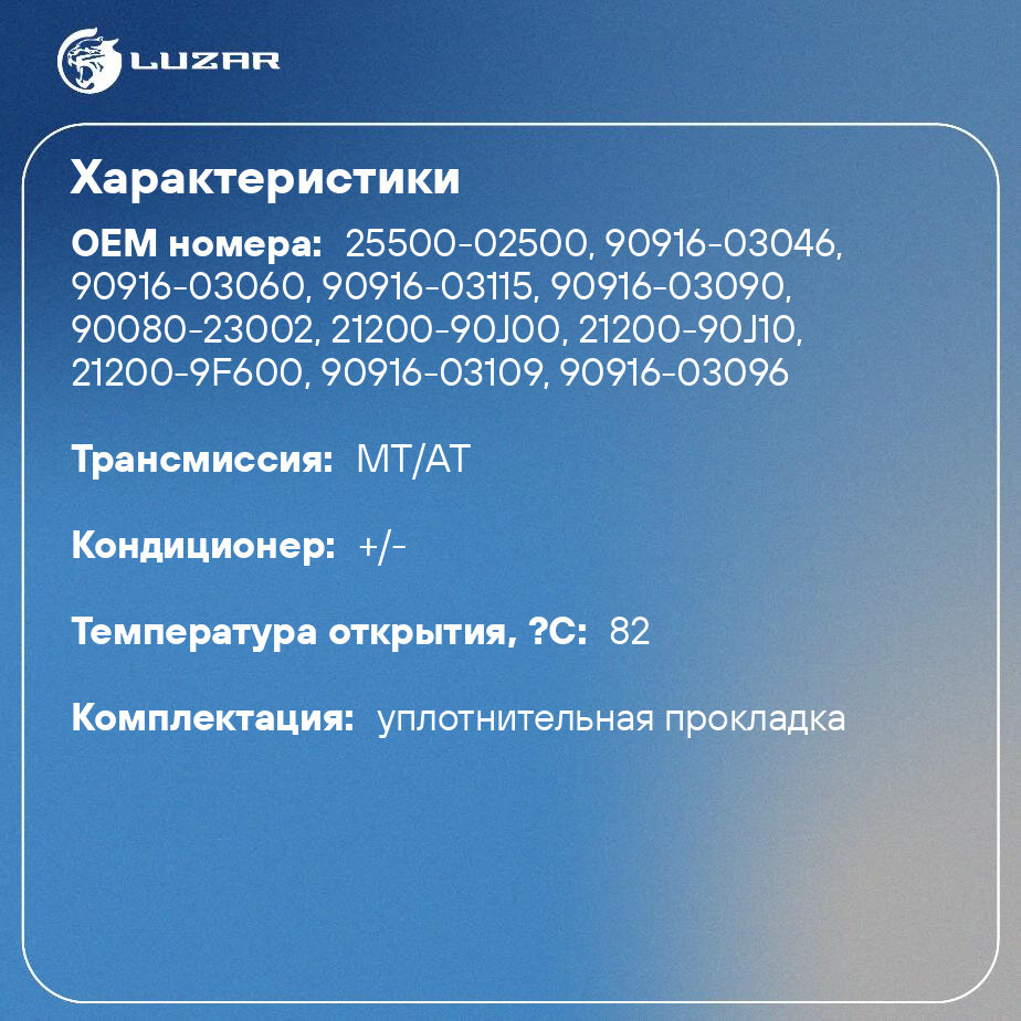Термостат для автомобилей Getz (02-)/Almera N16 (00-)/Almera Classic B10 (06-) (82°C) (термоэлемент) LT 0825 LUZAR интересное: