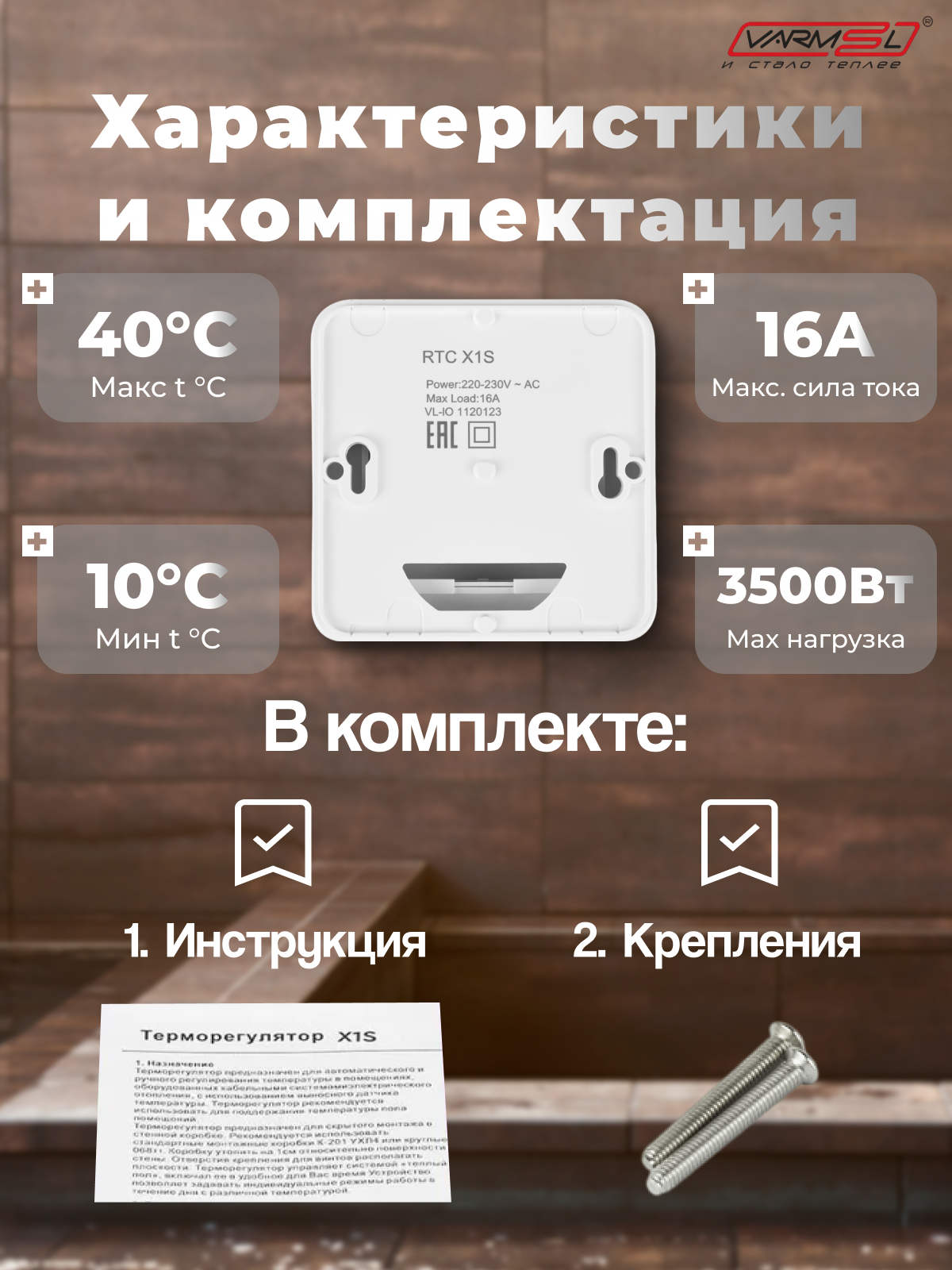 Купить Терморегулятор Varmel RTC X1S AIR для ик обогревателей и конвекторов (накладной)/Китай