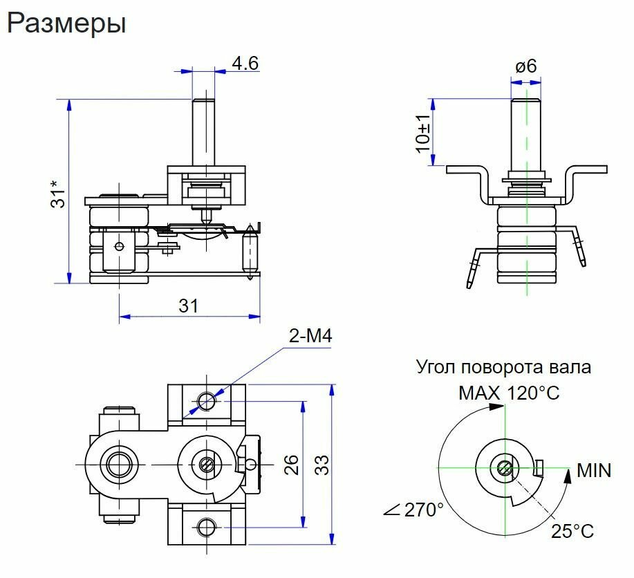 Термостат регулируемый KST201B 10A 250VAC 170C с диапазоном регулирования +20...+170С, комплект из 5 шт.