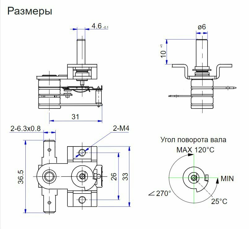 Термостат регулируемый KST 820 120C 16A 250VAC с диапазоном регулирования +20.+120С, комплект из 5 шт.