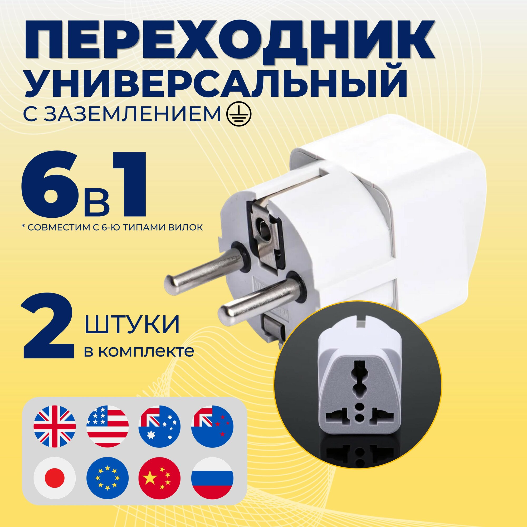 Переходник для розетки на евро вилку 2 шт / Универсальный адаптер на евровилку с заземлением для подключения устройств со штекером UK/US/CN интересное: