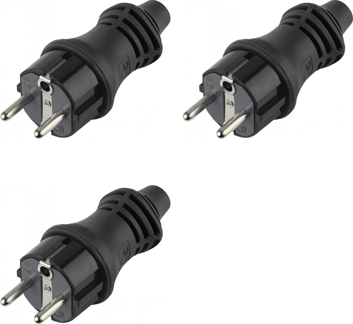 Вилка ЭРА с заземлением с прямым вводом IP44 черная (комплект из 3 шт.)